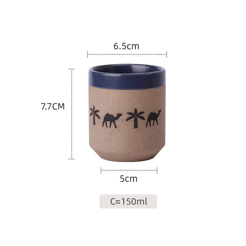Our custom ceramic coffee cups feature a handmade Arabic-style design, crafted from high-quality glazed ceramic. Perfect for cafés, hotels, cultural events, and retail, these cups support OEM/ODM customization for logos, patterns, and packaging in bulk orders.