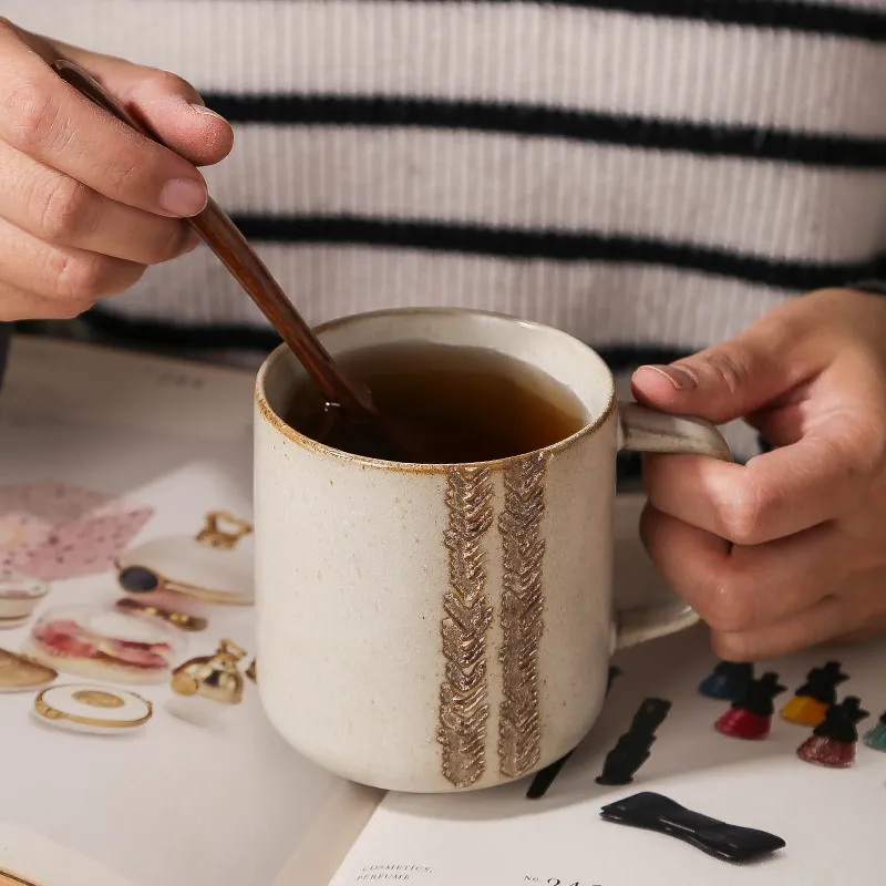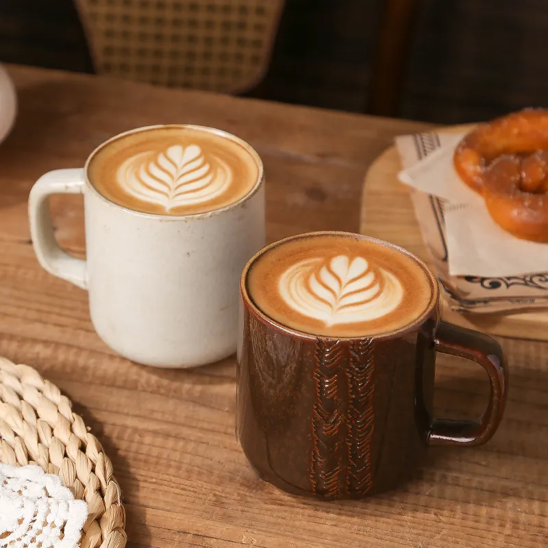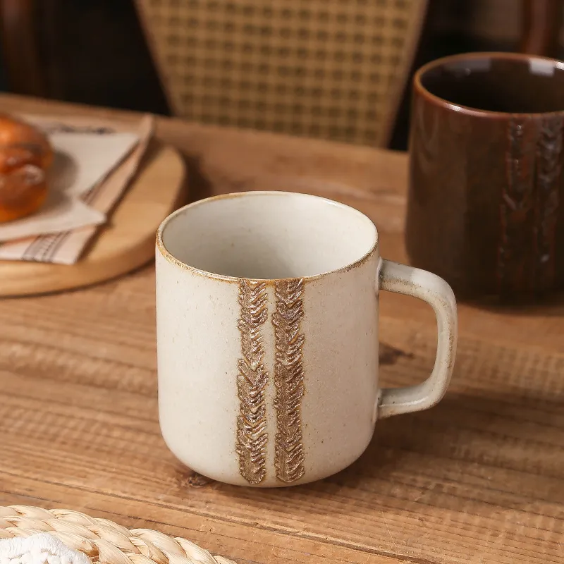 Authentic Handmade Nordic Aesthetic: Each mug features a unique, handcrafted texture with intricate vertical grain detailing, bringing a sophisticated retro Nordic charm to any modern coffee service.