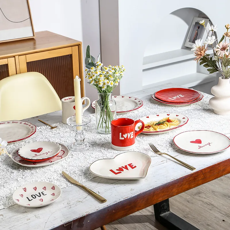 Custom Personalized Dinnerware High-End Red Wedding Decal Ceramic Dinnerware Set